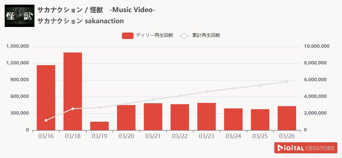 週間音楽YouTube再生回数ランキングを発表!サカナクション、TVアニメ「チ。 ―地球の運動について―」OP主題歌「怪獣」MV公開!ONE OR EIGHT、世界的アーティスト「Rihanna(リアーナ)」の代表曲「Don’t Stop The Music」サンプリング!