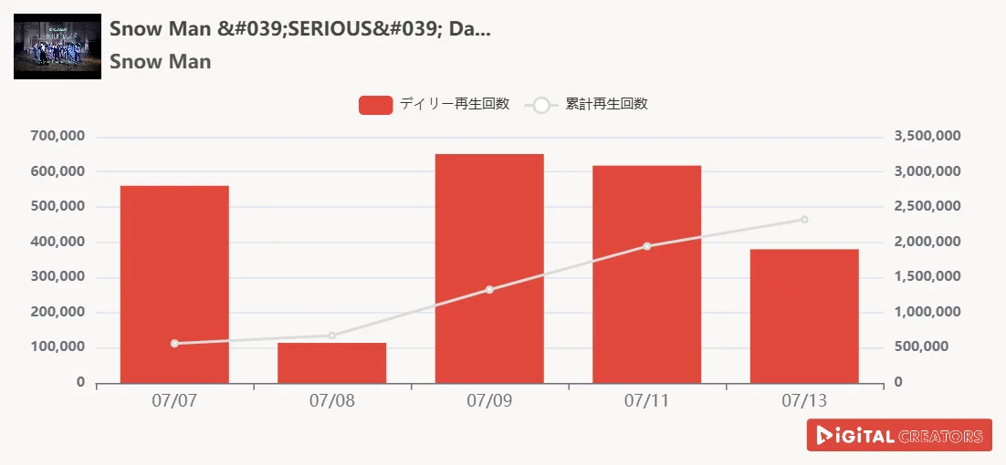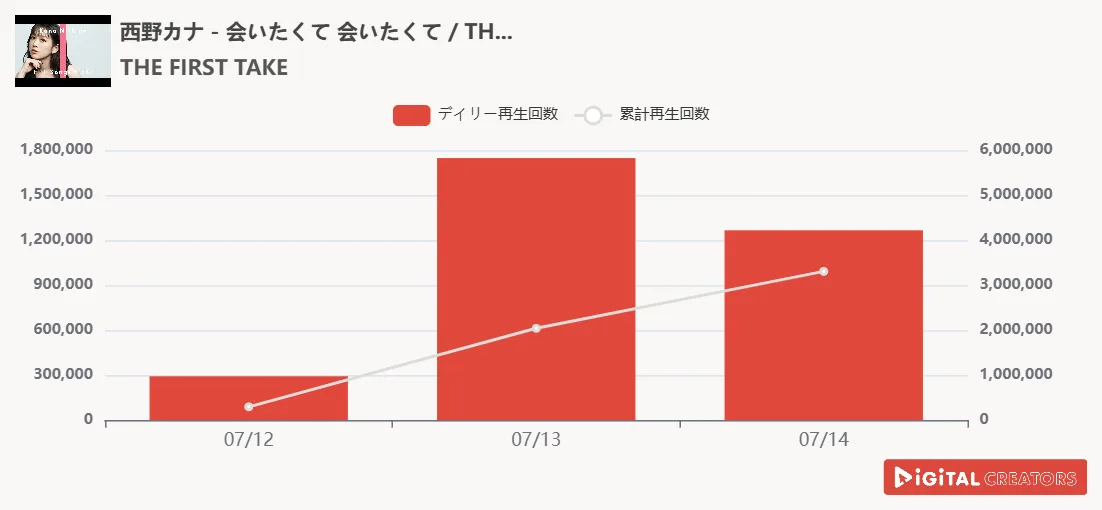週間音楽YouTube再生回数ランキングを発表!西野カナ「THE FIRST TAKE」初登場で「会いたくて 会いたくて」披露‼Snow Man、「SERIOUS」のDance Practice公開!TOBE所属の新グループ「CLASS SEVEN」配信デビュー‼
