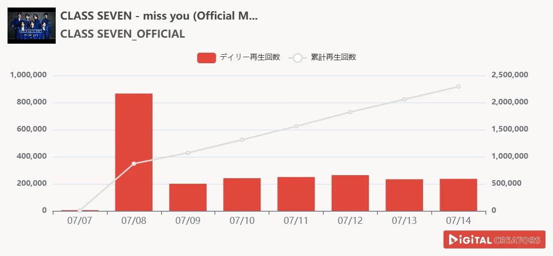 TOBE所属の新グループ『CLASS SEVEN』が7月7日に「miss you」を配信し、デビューを果たした。今年3月に開催されたTOBE所属アーティスト総出演の東京ドーム公演でサプライズ発表されてから、ファン待望の配信デビューとなる。