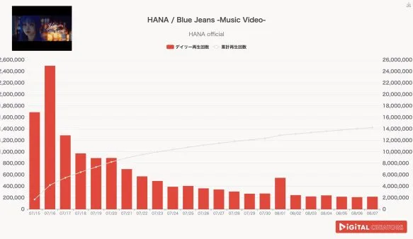 14日、ちゃんみながプロデューサーとして始動したオーディション番組『No No Girls』からデビューした7人組ガールズグループHANA・の2枚目シングル「Blue Jeans」のMVが公開された。力強い生き方を歌ったデビューシングル「ROSE」とは打って変わって、繊細な乙女心を表現した、甘酸っぱいラブソングとなっている。