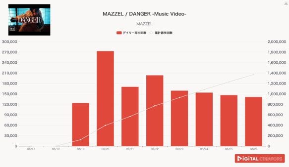 日本の8人組ボーイズグループの『MAZZEL』が、最新曲「DANGER」のMVを公開し、今週の2位を獲得した。