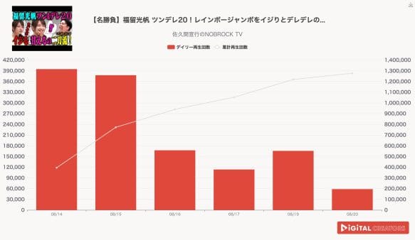 テレビプロデューサー・佐久間宣行のYouTubeチャンネル『佐久間宣行のNOBROCK TV』が3位を獲得。人気急上昇中のタレント・福留光帆が、お笑いコンビ・レインボーのジャンボたかおに“ツンデレ攻撃”を仕掛ける企画動画を公開した。