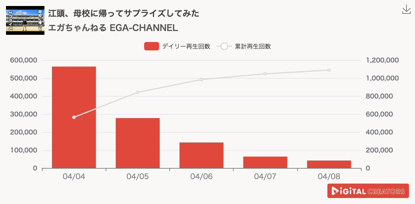 週間YouTube芸能人動画再生回数ランキングを発表!エガちゃんねる、母校をサプライズ訪問で江頭の目にも涙!よにのちゃんねる、羽田空港でわんぱく朝ご飯!辻チャンネル、第5子初めての野菜離乳食作り!