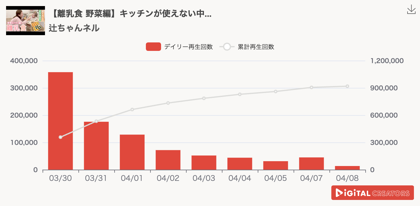 第3位は『辻ちゃんネル』。リフォーム中でコンロが使えない中、第5子の離乳食作りに励んでいる。手間をかけて作った離乳食をニコニコで平らげる姿は愛しさが何倍にも膨れ上がるのだろう。